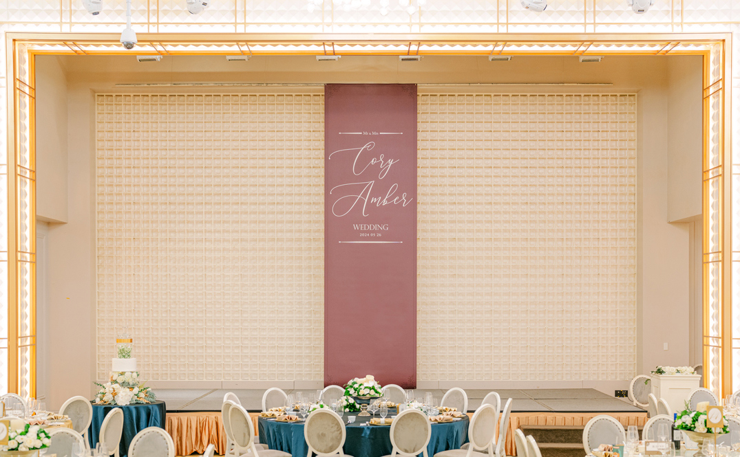 旗幟全長5公尺,適合挑高的綠蒂廳,全場賓客祝福的回憶載體,見證您的婚禮時刻。
